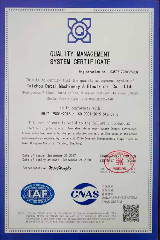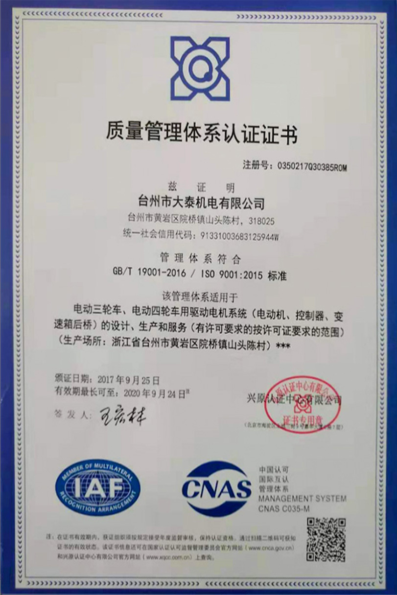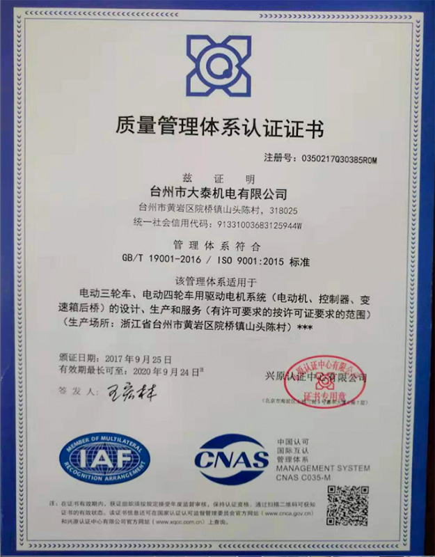 公司本著科技創(chuàng)新 質(zhì)量為上的宗旨,以產(chǎn)品的設(shè)計(jì)研發(fā)為中心,擁有雄厚的技術(shù)開(kāi)發(fā)團(tuán)隊(duì)。經(jīng)過(guò)十多年的努力,從最早的直流無(wú)數(shù)永磁電機(jī)和控制器到不變檔連體后橋驅(qū)動(dòng)總成,再到兩檔變速后橋驅(qū)動(dòng)總成,到現(xiàn)在的六相永磁同步電機(jī)(模塊化)控制系統(tǒng)總成,國(guó)內(nèi)大功率電動(dòng)三輪車的3個(gè)發(fā)展階段,見(jiàn)證了大泰電動(dòng)力系統(tǒng)研發(fā)和技術(shù)創(chuàng)新給行業(yè)帶來(lái)的重大改變。公司先后獲得臺(tái)州市首批瞪羚企業(yè),黃巖區(qū)百?gòu)?qiáng)企業(yè),安全生產(chǎn)標(biāo)準(zhǔn)化,發(fā)明專利4項(xiàng),國(guó)家實(shí)用新型專利9項(xiàng),外觀專利4項(xiàng)等各項(xiàng)榮譽(yù),公司產(chǎn)品一直深受國(guó)內(nèi)外電動(dòng)三輪車生產(chǎn)企業(yè)和終端消費(fèi)者好評(píng),大泰已成長(zhǎng)為大功率電動(dòng)車行業(yè)的標(biāo)桿。
