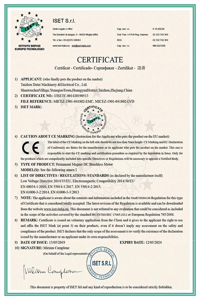 臺(tái)州市大泰機(jī)電有限公司成立。首款無(wú)刷直流永磁電機(jī)面世。